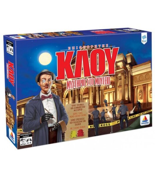 Επιτραπέζιο Επιθεωρητής Κλου (100766).Στο Μουσείο της πόλης χτυπάει ο συναγερμός! Κάποιοι προσπαθούν να κλέψουν έργα ανυπολόγιστης αξίας!Αμέσως το Μουσείο κλείνει. Οι ύποπτοι μαζί με τα κλοπιμαία παγιδεύονται μέσα.Ο Επιθεωρητής Κλου καταφτάνει στο Μουσείο και με μία μόνο ματιά καταλαβαίνει ποιος είναι ο κλέφτης και τι προσπάθησε να κλέψει.Εσείς, ως νέοι Επιθεωρητές, καλείστε να βρείτε τον κλέφτη και το κλοπιμαίο.Ο Κλου σας αναθέτει από ένα δωμάτιο προς έρευνα.Αφού συγκεντρώσετε στοιχεία από το δωμάτιό σας, είστε πλέον έτοιμοι να βρείτε επιπλέον στοιχεία στα υπόλοιπα δωμάτια του Μουσείου και από τους άλλους Επιθεωρητές.Κάντε σωστές ερωτήσεις και παίξτε τις κάρτες Ενέργειας για να αλλάξετε το παιχνίδι!Το κάθε Μυστήριο είναι μοναδικό και κρατά μέχρι το τέλος την αγωνία.Θα καταφέρετε να λύσετε το Μυστήριο του ΜουσείουΠεριεχόμενα: ·18 κάρτες Στοιχείων ·24 κάρτες Ενεργειών ·22 κάρτες Γεγονότων ·6 Ξύλινα Πιόνια επιθεωρητών ·1 Ταμπλό ·1 μπλοκ σημειώσεων
