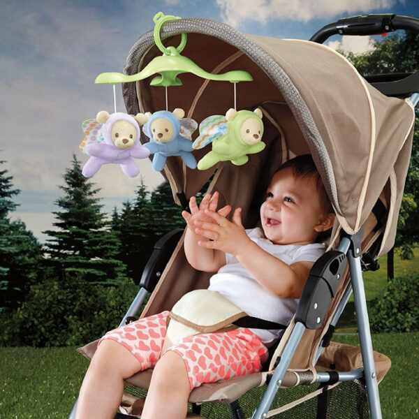 To Μουσικό Περιστρεφόμενο βοηθάει το μωρό σας να χαλαρώσει από μωρό έως νήπιο. Τα νεογέννητα χαλαρώνουν κοιτάζοντας τα αστεράκια που προβάλλονται και ακούγοντας τις μελωδίες. Καθώς το μωρό μεγαλώνει μετατρέπεται σε προβολέα που μπορείτε να τοποθετήσετε σε κάποιο έπιπλο. Μπορείτε επίσης να προσαρμόσετε το περιστρεφόμενο στο καρότσι του μωρού. Μηχανοκίνητο περιστρεφόμενο με προβολή για νεογέννητα, βρέφη και μωρά έως και 5 μηνών Προβολή με αστεράκια στο ταβάνι και τους τοίχους 3 λειτουργίες με μουσική ή ήχους διάρκειας έως και 30 λεπτών Αποσπώμενο περιστρεφόμενο με 3 μαλακά φτερωτά αρκουδάκια Συνδέεται εύκολα με το καρότσι του μωρού για διασκέδαση στις βόλτες Περιλαμβάνει τηλεχειριστήριο Μετατρέπεται εύκολα σε προβολέα για το δωμάτιο του παιδιού