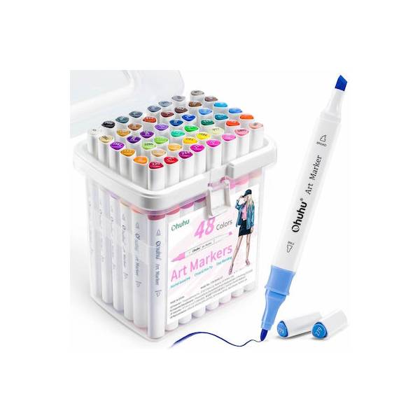 Ohuhu Markers 48 Χρώματα Διπλή Μύτη Με Θήκη