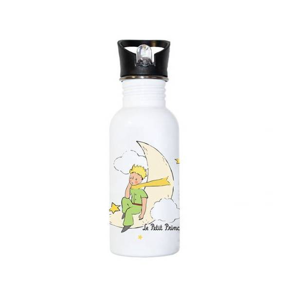 Μπουκάλι, ανοξείδωτο με καλαμάκι 500 ml, με τον Μικρό Πρίγκιπα να κάθεται στο φεγγάρι. Από τα πρωτότυπα σχέδια του Antoine de Saint-Exupery. Διαστάσεις: 20,5×7,1 εκ