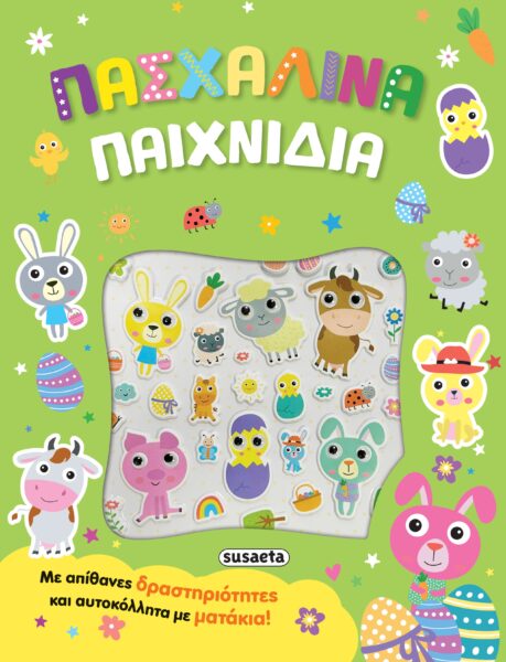 Ένα απίθανο βιβλίο γεμάτο πασχαλινές δραστηριότητες, γλυκά ζωάκια και αυτοκόλλητα με ματάκια που κουνιούνται! Μέτρησε τα αυγά στο κοτέτσι, βρες το μονοπάτι των αριθμών, αντιστοίχισε, χρωμάτισε και παίξε ένα σωρό πασχαλινά παιχνίδια παρέα με τα πιο όμορφα ζωάκια! Τα αυτοκόλλητα που συνοδεύουν το βιβλίο μπορείς να τα κολλήσεις όπου σου αρέσει.