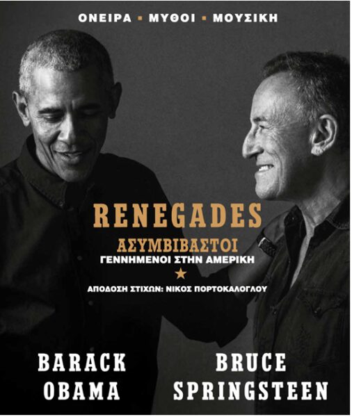 Tι κοινό μπορεί να έχουν ένας πρώην Αμερικανός πρόεδρος και ένας ροκ σταρ Πώς μπορούν οι τραυματικές αναμνήσεις της παιδικής τους ηλικίας να τους φέρουν κοντά Πόσο έμοιαζαν οι νεανικοί εφιάλτες τους και πώς κατάφεραν να απαλλαγούν απ αυτούς Είναι δυνατόν να βγει κανείς καλύτερος μέσα από μια επίπονη συναισθηματικά κατάσταση, να ξορκίσει τους προσωπικούς του δαίμονες και να διαπρέψει Και εν τέλει πόσο σημαντικό είναι να μοιράζεσαι με τους άλλους όσα σε πόνεσαν και σημάδεψαν ανεξίτηλα τη ζωή σου Απαντήσεις στα παραπάνω ερωτήματα, και μάλιστα εξαιρετικά ενδιαφέρουσες, δίνουν ο Μπαράκ Ομπάμα και ο Μπρους Σπρίνγκστιν μέσα από μια σειρά προσωπικών τους συζητήσεων οι οποίες ηχογραφήθηκαν αρχικά ως podcast και τώρα αποτυπώνονται στο χαρτί. Το «Renegades: – ΑΣΥΜΒΙΒΑΣΤΟΙ ΓΕΝΝΗΜΕΝΟΙ ΣΤΗΝ ΑΜΕΡΙΚΗ των Barack Obama και Bruce Springsteen» είναι κάτι πολύ περισσότερο από ένα κοινό βιβλίο. Αποτελεί μια συγκλονιστική εξομολόγηση δύο σημαντικών αλλά διαφορετικών προσωπικοτήτων και μια βαθιά ψυχαναλυτική λεκτική επικοινωνία ανάμεσα σε δύο φίλους που, με τον τρόπο του ο καθένας, έχουν αφήσει το αποτύπωμά τους στην πρόσφατη ιστορία της χώρας τους. Πάνω και πέρα απ όλα όμως είναι δύο άνδρες, δύο Αμερικανοί πολίτες που κουβαλούν τα ψυχολογικά βάρη τού όχι και τόσο εύκολου παρελθόντος τους και ανησυχούν για το αβέβαιο μέλλον της πατρίδας τους. Το RENEGADES – ΑΣΥΜΒΙΒΑΣΤΟΙ ΓΕΝΝΗΜΕΝΟΙ ΣΤΗΝ ΑΜΕΡΙΚΗ είναι μια πολυτελής σκληρόδετη Έκδοση (COFFEE TABLE BOOK), που εκτός από τη συναρπαστική συζήτηση ανάμεσα στους δύο φίλους, περιλαμβάνει ανέκδοτους στίχους του Μπρους, χειρόγραφες ομιλίες του Μπαράκ Ομπάμα, και δεκάδες συλλεκτικές φωτογραφίες. Η απόδοση των στίχων του Μπρους Σπρίνγκστιν στα Ελληνικά, έγινε από τον μεγάλο Έλληνα τραγουδοποιό Νίκο Πορτοκάλογλου!