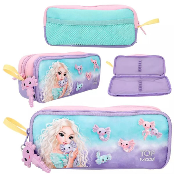 Κασετίνα γοργόνα TOPModel με 2 θήκες με φερμουάρ και μία εξωτερική θήκη με δίχτυ. Διαστάσεις 23Χ10Χ6